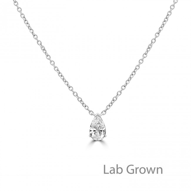 9ct White Gold Pear cut Lab Grown Diamond Solitaire pendant