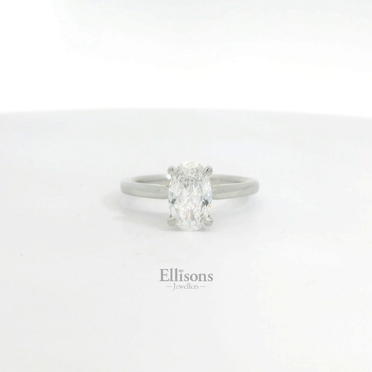 Platinum Oval Solitaire E VS1 Diamond Ring Key Features