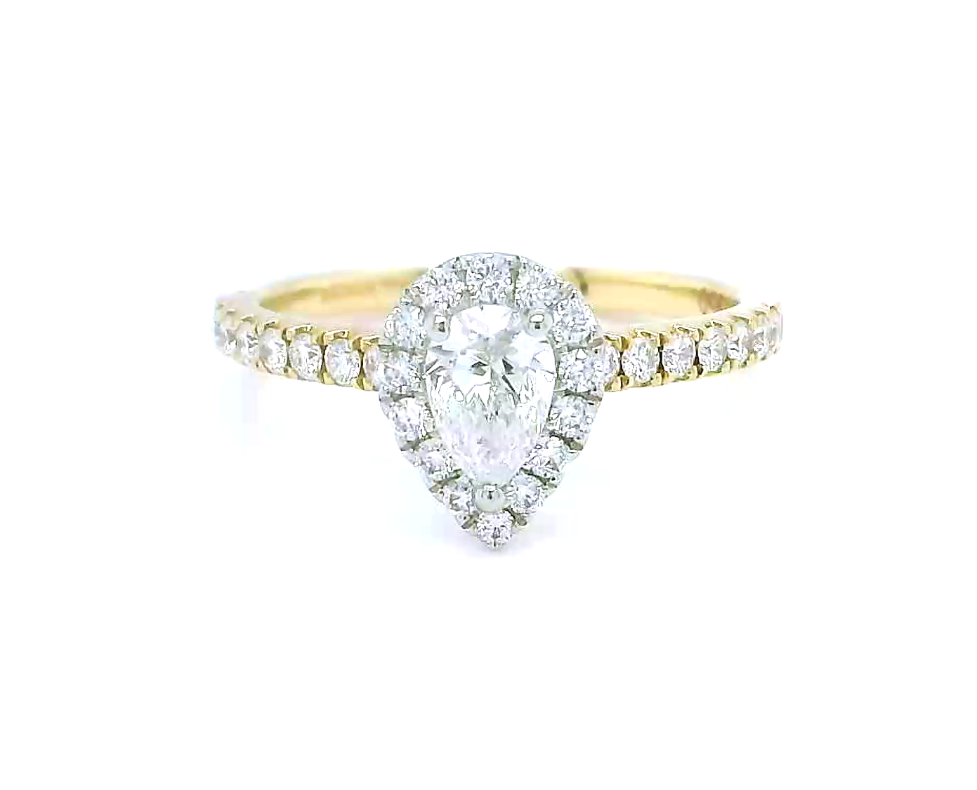 18ct Gold & Platinum Pear ESi1 Diamond Halo Ring