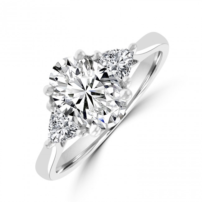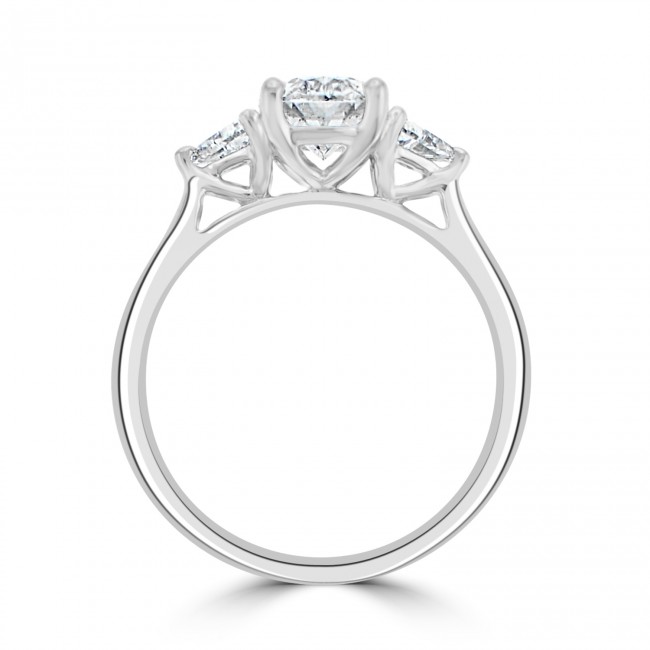 - Side stones: Two trillion-cut diamonds for a tapered, elegant silhouette