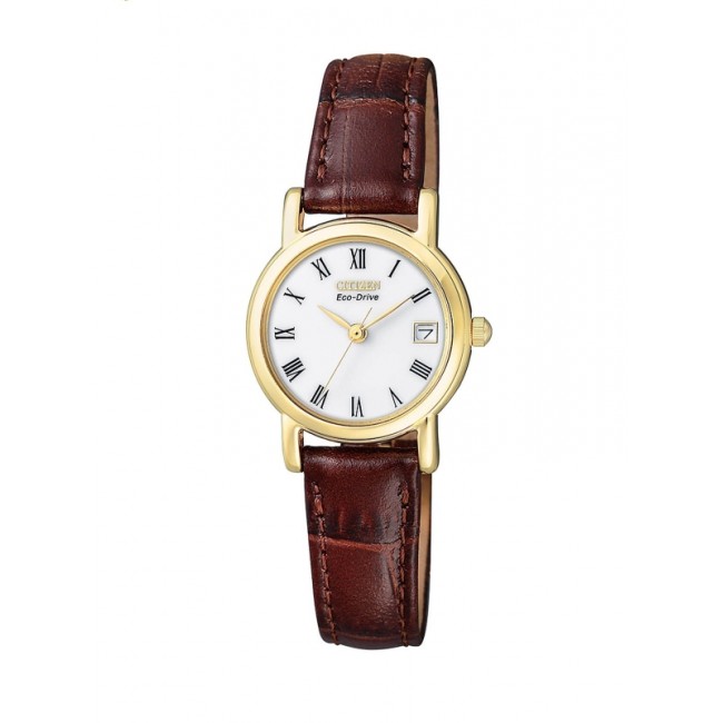 Citizen Eco-Drive Gold Tone Ladies Brown Strap Watch