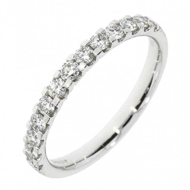 Thirteen brilliant cut diamonds are set flush within a low profile, castle setting featuring squared top clawed and a smooth surface. The Platinum band measures 2.2mm in width and compliments many styles of engagement ring.